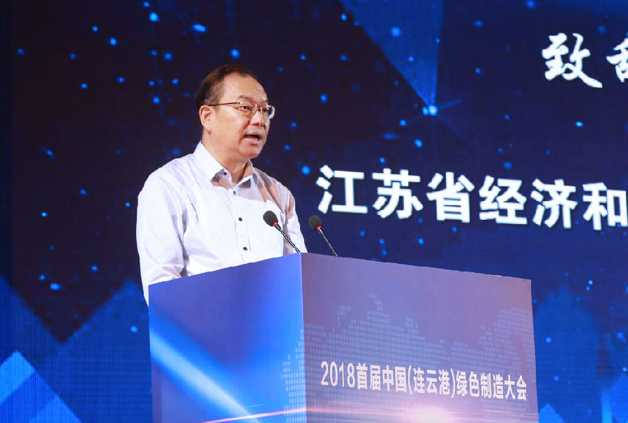 花果山麓,绿意盎然。6月8日上午,2018首届中国(连云港)绿色制造大会在花果山酒店隆重召开。国务院参事谢伯阳、中国工程院院士金涌、生态环境部政策法规司副司长赵柯、江苏省经信委党组书记、主任谢志成、连云港市委副书记、代市长方伟、中国石油和化学工业联合会副会长周竹叶、连云港市经济和信息化委员会主任吕洁、盛虹集团董事长缪汉根等嘉宾出席大会。