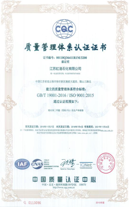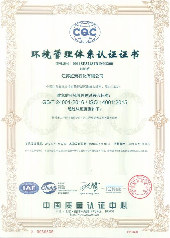 在骄阳似火的7月,虹港石化传来好消息,公司ISO9001和ISO14001质量和环境管理体系新版证书顺利颁发,圆满完成换版工作;能源管理体系第一次监督审核通过,继续保持证书有效。
