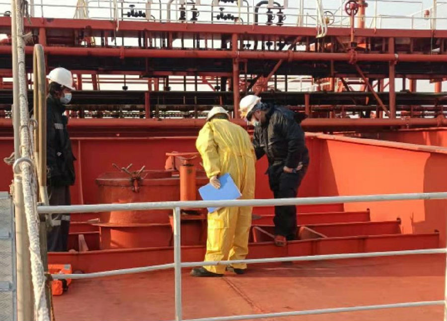 这力量,是奔忙脚步在星光下的点点印记。码头生产部工艺工程师王泽琨每天扎根一线,在码头船岸通道检查过程中,巡查各个重点部位,在登船梯梯口昼夜值守,严格对上下船人员进行管控,落实作业人员上船前防护和下船后消毒措施,哪怕到了星光洒落的深夜,仍能看到他尽职工作的身影。